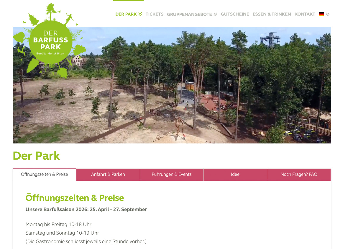 Die Erstentwicklung der Website erfolgte noch vor der Eröffnung und musste mit vorläufigem Bildmaterial und Informationen gestaltet werden.